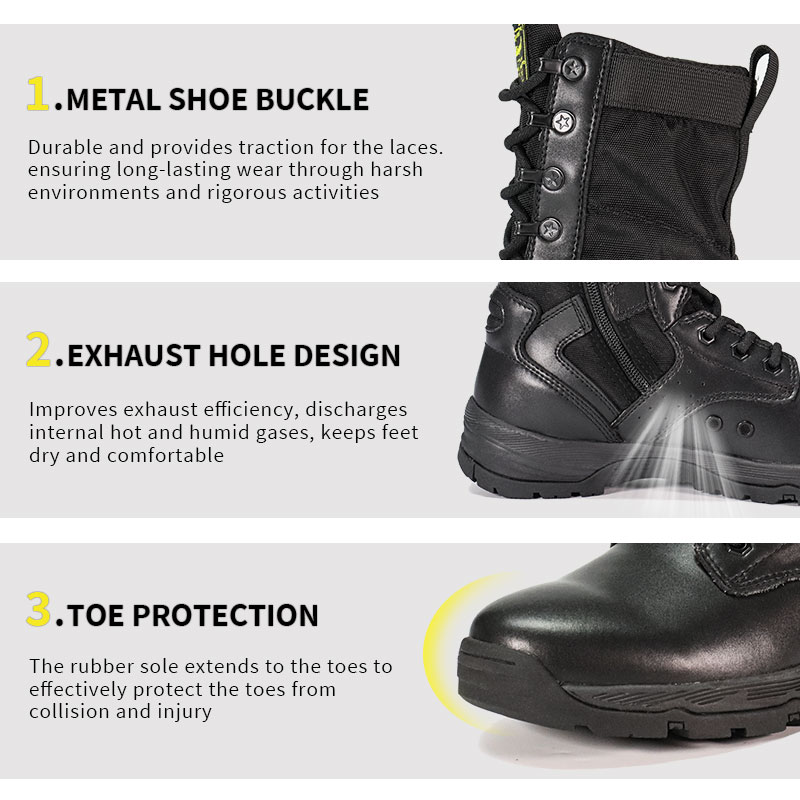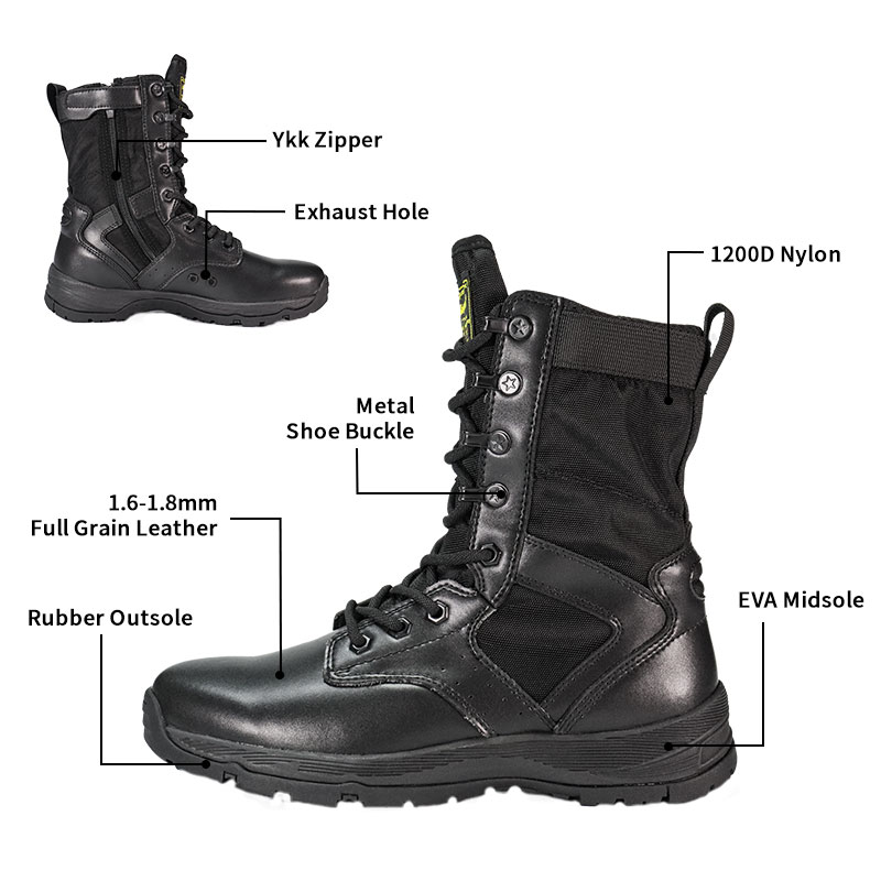 Tyto policejní boty s plnou gumovou podrážkou jsou skladem a připraveny k odeslání, přičemž objednávky začínají od pouhých 10 párů. Pro další podrobnosti nebo dotazy na ceny se neváhejte kdykoli obrátit. Přizpůsobení je také k dispozici při minimální objednávce 800 párů. A tento model má následující výhody: