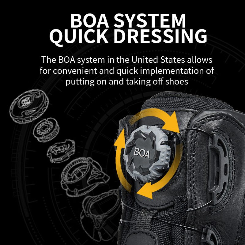 Systém BOA usnadňuje zapínání/vypínání: rychlé utažení zatažením, uvolnění. Žádné tkaničky, žádné potíže.