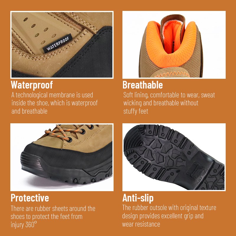 Tyto protiskluzové vodotěsné turistické boty s pevným uchopením jsou k dispozici pro přizpůsobení barev, materiálů a detailů, s MOQ 800 párů, ideální pro spolupráci značek a skupinové nákupy. A tyto trekové boty mají následující výhody: