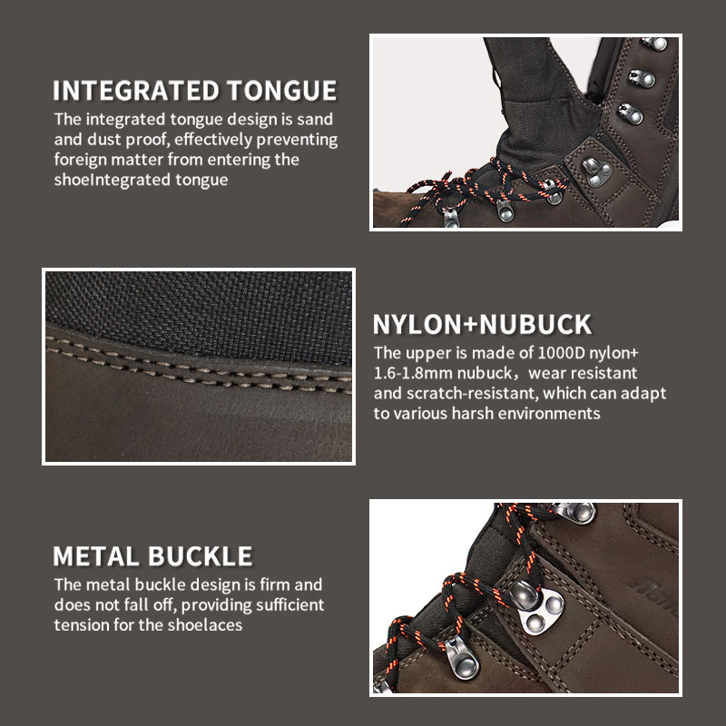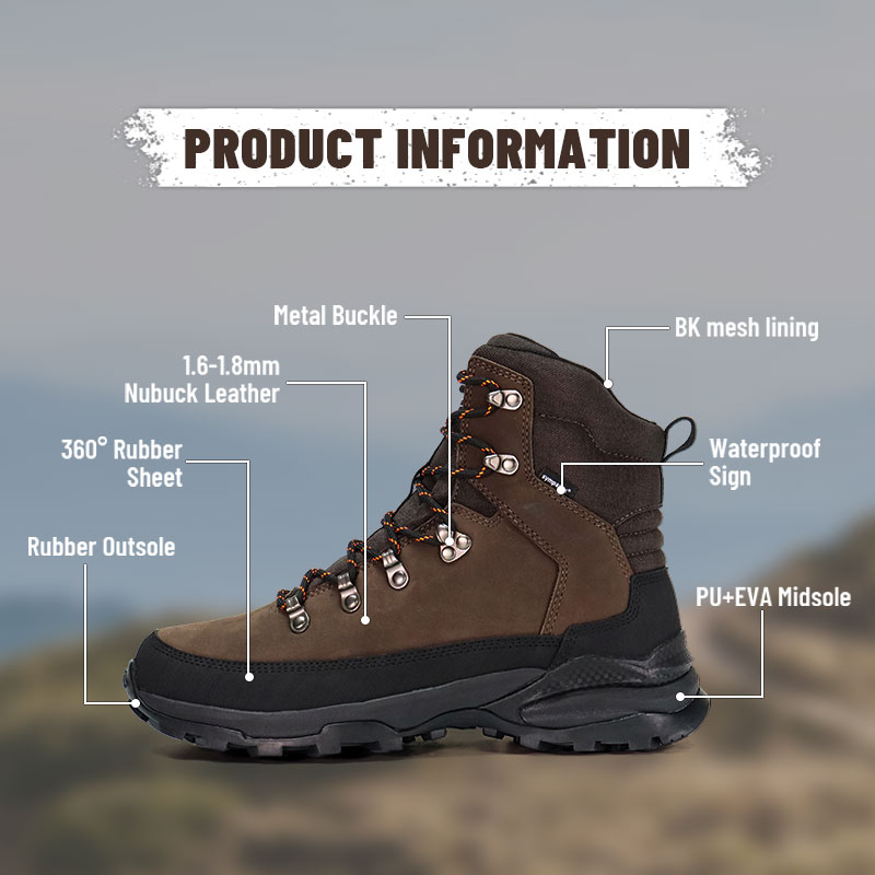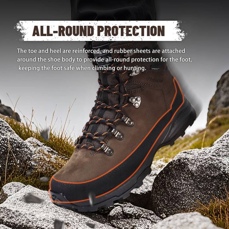 Špička a pata jsou vyztuženy a kolem těla boty jsou připevněny gumové pásy, které poskytují všestrannou ochranu nohy a udržují nohu v bezpečí při lezení nebo lovu.